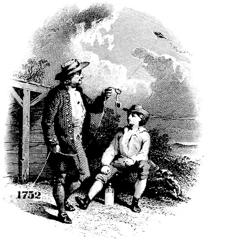 1746 yılında Amerikalı mucit Benjamin Franklin, elektrik yüklerindeki artı ve eksi uçlarını keşfederek elektriğin korunumu ilkesini ortaya attı. Elektrik eksikliği ya da fazlalığı bulunan cisimlerin birbirini ittiğini, birinde eksiklik diğerinde fazlalık olan cisimlerin ise birbirlerini çektiğini ileri sürdü. Fazlalığı artı elektrik, eksikliği ise eksi elektrik olarak adlandırdı. Franklin, yaptığı bir deneyde gök gürültülü havada uçurtma uçurarak ucuna bağladığı ipek bir ip ile elektrik yüklü buluttan Leyden şişesini doldurmayı başardı. Böylece şimşek ile elektrik arasında bağıntı kurdu. Uçurtmanın ipek ipine demir bir anahtar bağladı ve daha sonra bu anahtara temas ettiğinde elini elektrik çarptığını fark etti. Bu deney yıldırımsavarın (paratoner) icadına yol gösterdi.