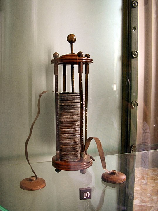 İtalyan fizikçi Alessandro Volta, 1775’te elektrostatik indüksiyon süreci ile elektrostatik yük üretmek için kullanılan, yalıtıcı kolu ile bir yalıtkan plakası ve bir metal plakadan oluşan basit bir jeneratör olan “elektrofor”u oluşturdu. İlk sürümü 1762’de İsveçli bilim adamı Johan Carl Wilcke tarafından keşfedilmişti. Fakat bunu geliştiren ve yaygınlaştıran İtalyan bilim adamı Alessandro Volta oldu. Elektrofor kelimesi de onun tarafından kullanıldı. Aynı üniversitedeki arkadaşı Luigi Galvani, kurbağa bacaklarının belirli iki metale temas etmesi sonucu refleks olarak hızla harekete geçmesinin bu hayvandaki iç elektrik sonucunda ortaya çıktığı sonucuna vardı ve 1791’de buna “Hayvansal Elektrik” dedi. Volta benzer deneyi kurbağa bacağı yerine tuzlu suya batırılmış bez ile yaptı ve bir elektrik akışı tespit etti. 1800’de çinko ve bakır plakalar arasına elektrolit olarak tuz karışımlı sıvı koyarak ilk elektrik pili olan, devamlı olarak elektrik akımı yaratan “Voltaik Pili” icat etti.