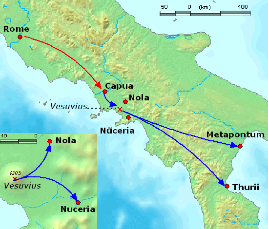 Romalı Claudius Pulcher ya da Claudius Glaber’in (isim kaynaklarda değişkenlik gösteriyor) komutasında alelacele toplanan 3.000 kişilik kuvvet, Vezüv Dağı’na sığınan asileri açlıktan bitkin duruma düşürmeyi amaçlıyordu. Spartacus’ün kuvvetleri cesur ve beklenmedik bir hareketle dağın yamaçlarından aşağıya indi ve Romalı askerleri kaçırttılar. Bu olaydan sonra çaresiz ama cesur bir grup insan daha asilere katıldı. Daha sonraları Praetor Publius Varinius, asilere karşı savaşmaya hazırlandığında ise asileri -beklediğinin tersine- savaşmaya hazırlanmış düzenli bir ordu gibi karşısında buldu. Romalılar harekete geçemeden isyancılar kaçtı ve Varinius, isyancıların hatlarına saldırmak için ilerlediğindeyse mevzilerin terk edilmiş olduğunu gördü. Bu esnada isyancı köleler Campania’dan pek çok önemli anlaşmazlıkta -özellikle Müttefikler Savaş’ı (MÖ 90-88) esnasında- Roma’nın karşısında yer alan Lucania bölgesine doğru kaçmışlardı. Bu bölge, Spartacus ve ekibinin lehine olan gerilla savaşı için daha uygun bir bölgeydi. Varinius kaçan kölelerin peşine düştü ve köleler ile Romalılar arasında birkaç çatışma meydana geldi hatta Varinius, bu çatışmaların birinde esir alınmaktan kıl payı kurtulmuştu. İsyancılar Campania’yı yeniden işgal ettiler ve Praetor Varinius’un quaestoru Gaius Thoranius’un yenilgisiyle, isyancılar neredeyse tüm Güney İtalya topraklarını ele geçirdiler. Campania’daki Nola ve Nuceria şehirleri ile Lucania’daki Thurii ve Metapontum gibi şehirler isyancılar tarafından yağmalandı. Bütün bu olanların sonunda Senato, MÖ 72 yılında, isyancılara karşı savaşması için her iki konsülü de görevlendirdi. Tarihçi Appian, bu noktada Spartacus’ün ordusunun yaklaşık 70.000 kadar askerden oluştuğunu öne sürmektedir.
