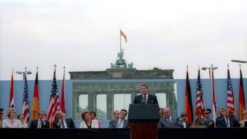 Doğu Avrupa’da Sovyet etkisi azaldı. 1989’da bölgedeki diğer tüm komünist devletler, hükümetini, komünist olmayan bir hükümetle değiştirdi. O yılın Kasım ayında, on yıllardır devam eden Soğuk Savaş’ın en görünür sembolü olan Berlin Duvarı, Reagan’ın Berlin’deki Brandenburg Kapısı’nda Sovyet başbakanına meydan okumasından sadece iki yıl sonra nihayet yıkıldı: Sayın Gorbaçov, bu duvarı yıkın. (Mr. Gorbachev, tear down this wall!)